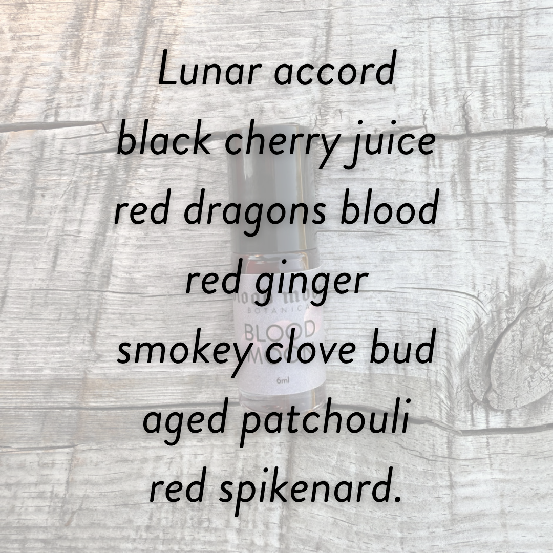 In honor of the full Blood Moon, and the namesake of my craft: Lunar accord, blended with black cherry juice, red dragons blood, red ginger, smokey clove bud, aged patchouli and a touch of red spikenard.