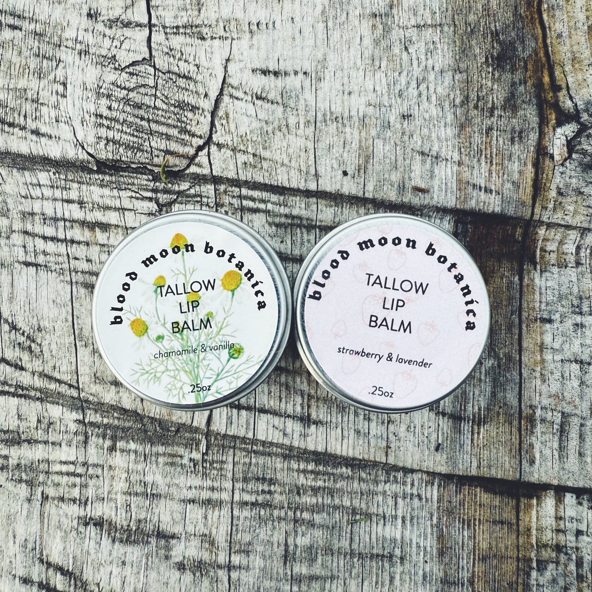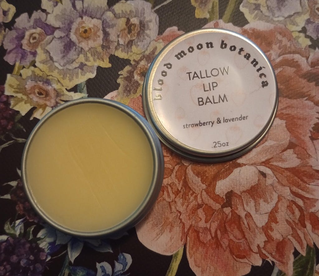 Once you go tallow, it’s really hard to go back to vegetable-based lip balms! Tallow contains a similar fatty acid profile to that of our own skin, thus absorbing better and provides a nice plush and conditioned feel. Additionally, olive oil, sunflower oil infused with organic calendula and pure raw beeswax to round out this beautiful balm.