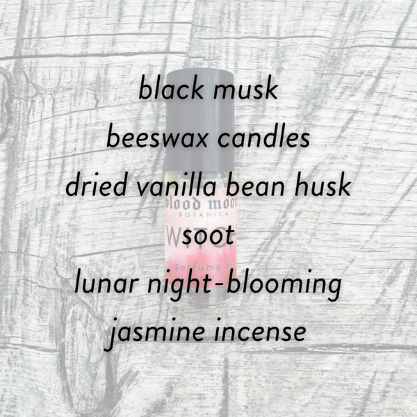Witch will naturally work with your own skin chemistry for a unique fragrance. Starts with sooty vanilla, and will persist with the vanillic notes for a few hours, finally drying down to a black oud musk. The jasmine is a soft background note to round out and add a layer of mystery.